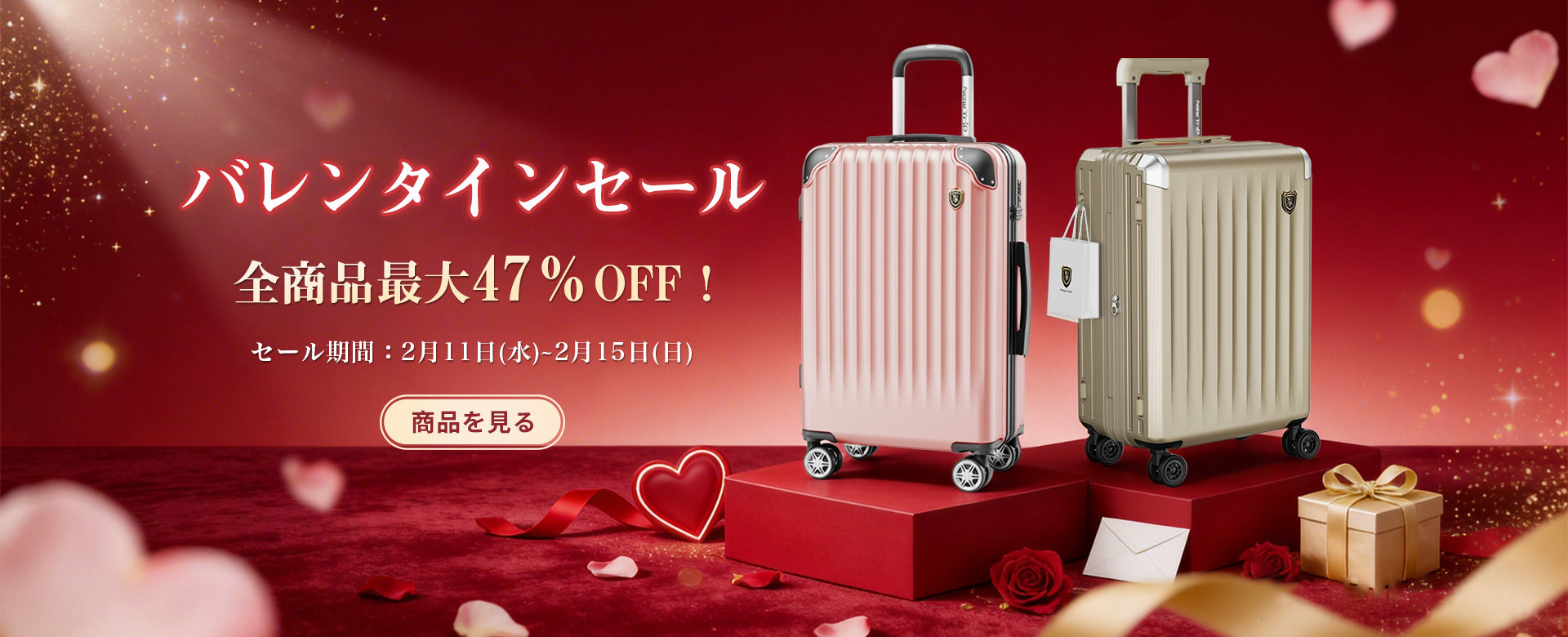 🎁 公式サイト限定の特典:毎日厳選された商品を大幅なタイムセール割引で提供。さらに、10,000円以上のご購入でスーツケースのキャスターカバーをプレゼントする公式サイト限定のキャンペーンを実施中。