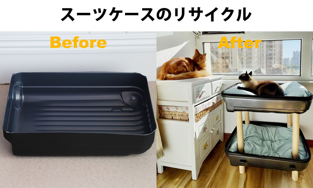 旧スーツケースをねこ小屋にリメイク