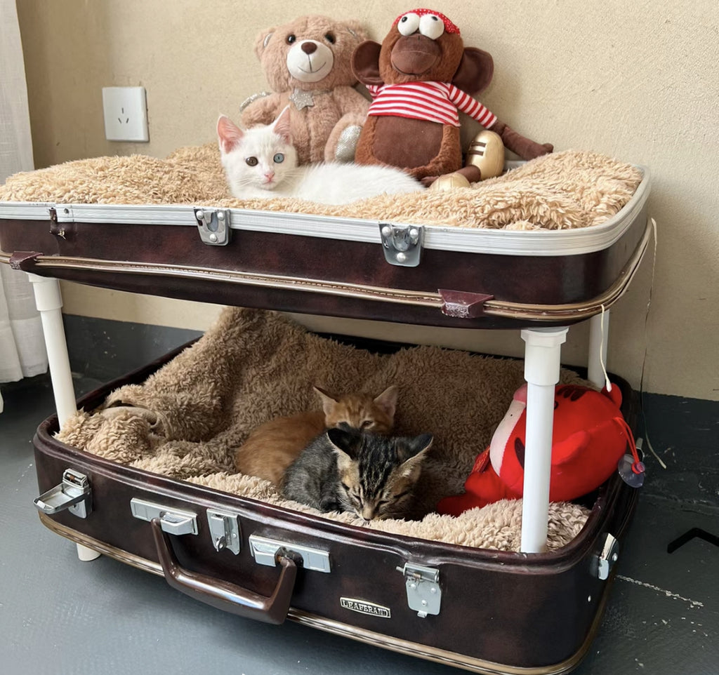 家に使わなくなったスーツケースがあれば、快適なねこ小屋にリメイクすることができます。まず、キャスターや鋭い部分を取り外し、中に柔らかい毛布を敷きます。次に、使わなくなったふわふわの枕を二つ置いて、新しいねこ小屋の完成です~