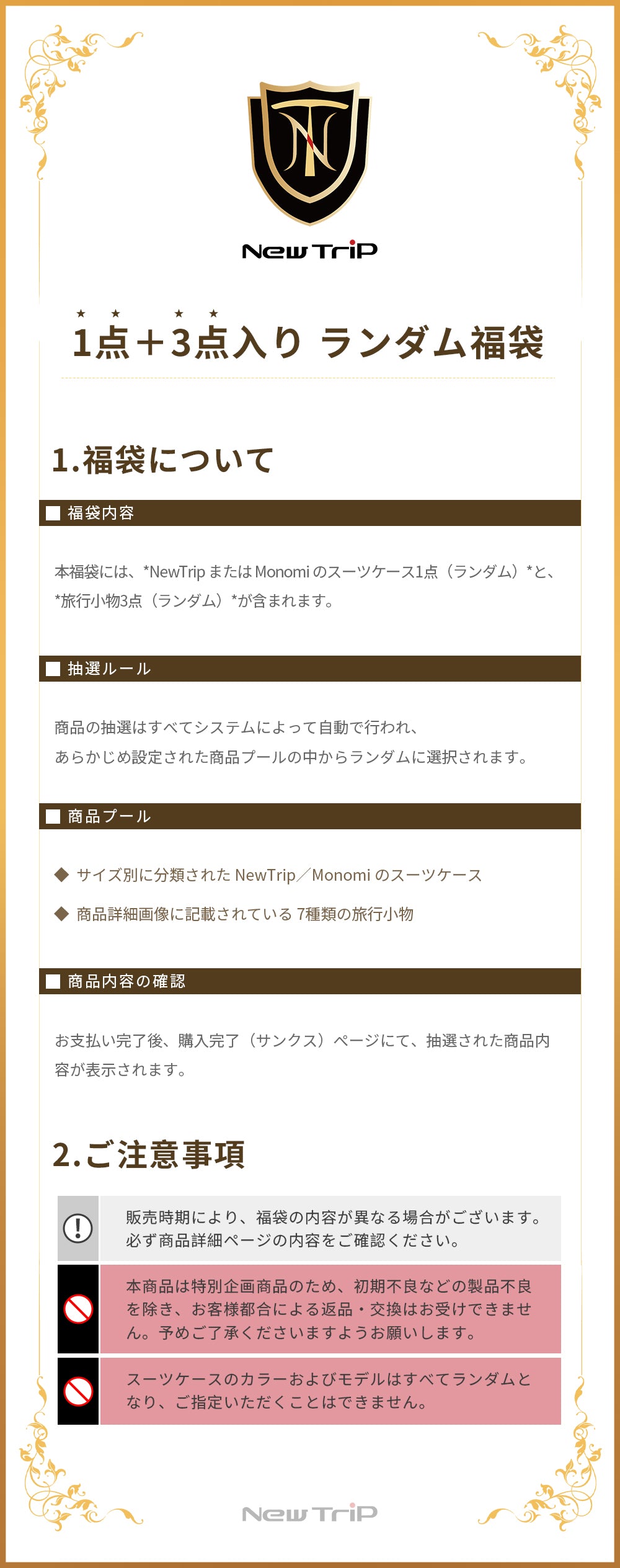NewTrip 2026新春福袋 スーツケース1台+人気旅行小物3点・超お得セット