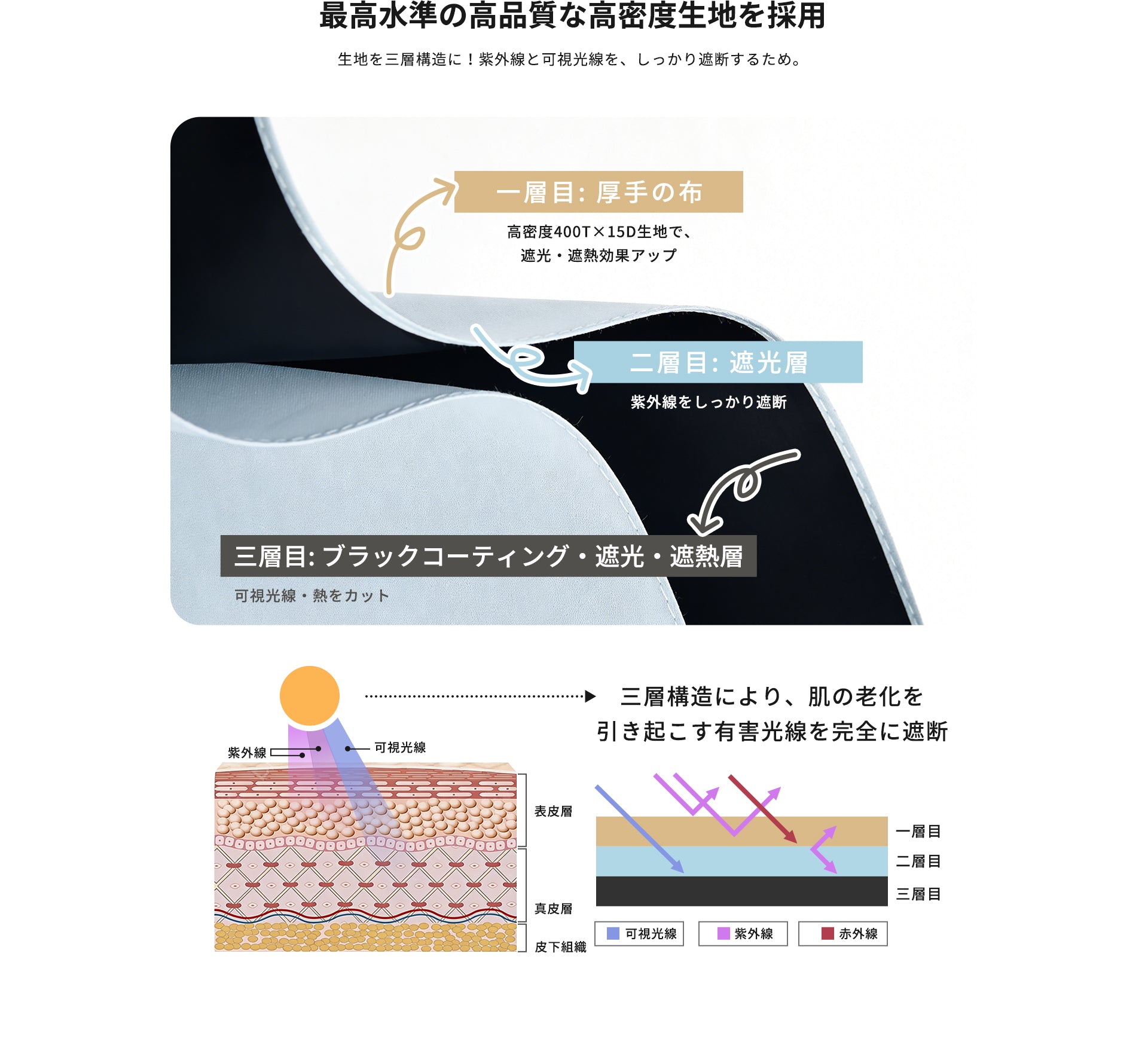 【UV컷 99%로, 햇빛 대책도 확실히】