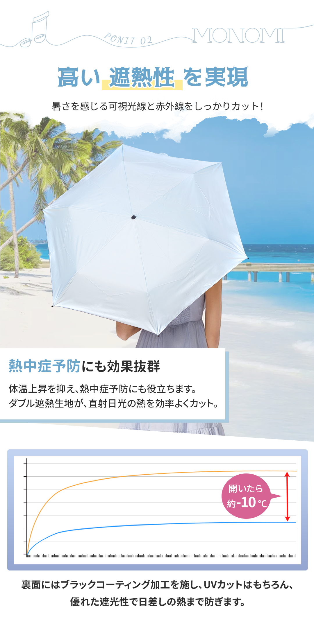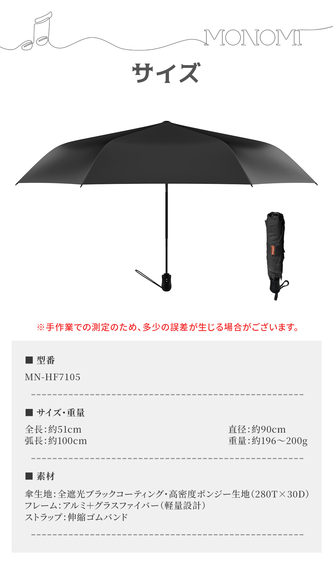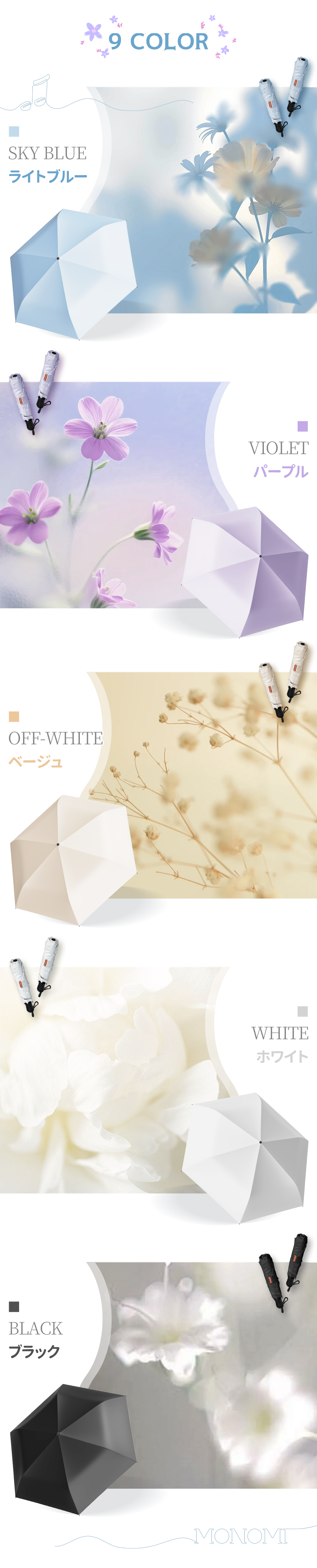 [先行予約] Monomi超軽量日傘 紫外線遮蔽率100% 晴雨兼用 アルミ合金6本骨 7105
