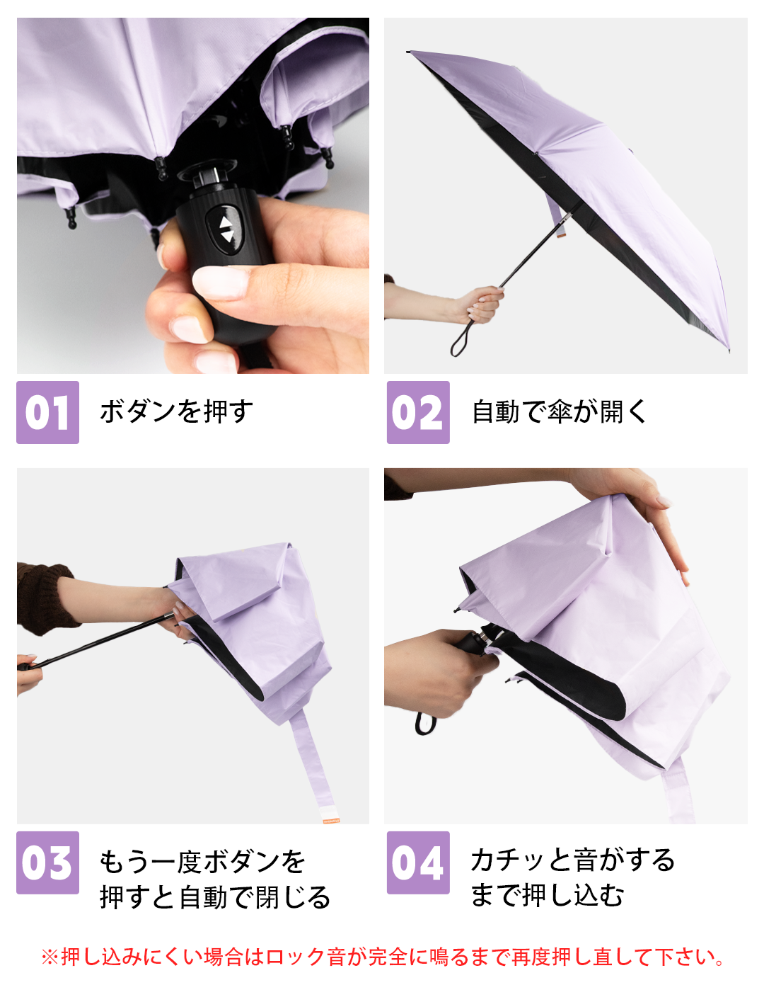 従来の自動開閉傘にありがちな「ボタンの反応の悪さ」を構造改善により克服 。